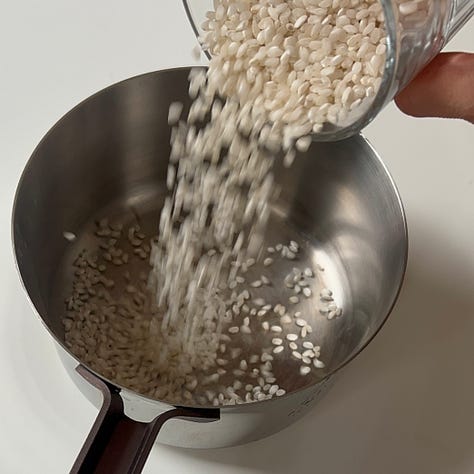 rinse your rice, then place it in a pan with water and bring it to a boil